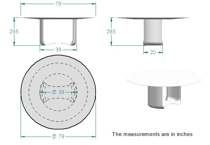 - Stability: base sized (39″x 20″ inch) to ensure adequate support moment for the 220 cm diameter.